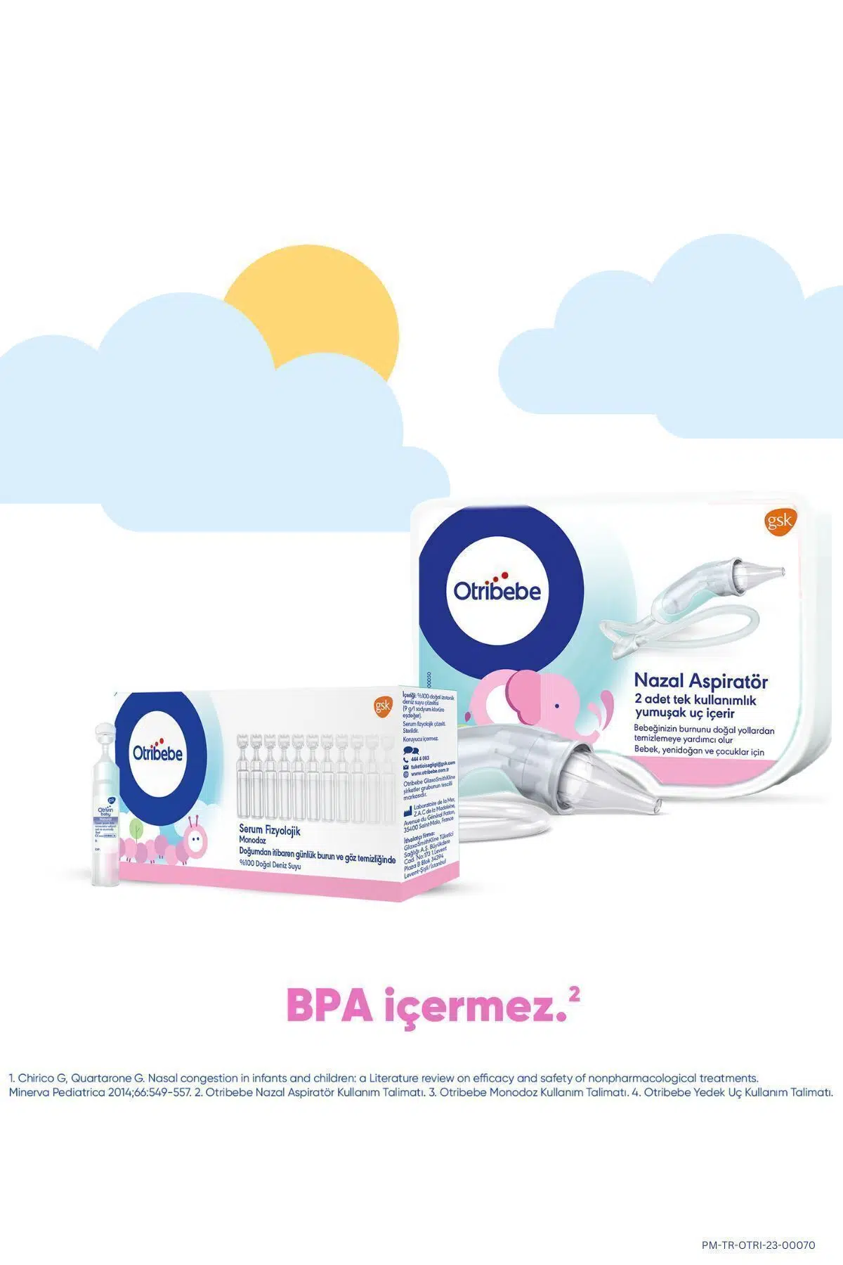 Otribebe Nazal Burun AspiratörüPaket Otribebe Nazal Aspiratör Ve 2 Adet Yedek Uç İçerir. Otribebe Nazal Aspiratör Ve Yedek Uçlarburnun Tıkanmasına Yol Açan Burun Salgısının Burundan Kontrollü Aspirasyon Yardımı İle Temizlenmesi İçin Geliştirilmiş Medikal Bir Cihaz Olan Otribebe Nazal Aspiratör Ağızlık, Esnek Silikon Bir Tüp, Aspiratörün Sabit Tutulmasına Yarayan Sert Bir Gövde Ve Bebeğin Burun Deliğine Uygun Tasarlanmış Sünger Filtreli Şeffaf Anatomik Uçtan Oluşur. Otribebe Nazal Aspiratör'Ün Tek Kullanımlık Anatomik Uçları Burun Salgısının Cihaza Geçmesini Önlemek İçin Sünger Bir Filtre İçerir. Otribebe Nazal Aspiratör, Bir Kutu İçerisinde 3 Adet Tek Kullanımlık Yedek Uç İle Birlikte Satılır. Sonraki Kullanımlar İçin 10'Lu Yedek Uç Kutuları Da Eczanelerde Mevcuttur. Tek Başına Veya Otribebe Monodoz İle Birlikte Kullanılır.Nasıl Kullanılır?Otribebe’Nin Özgün Temizleme Yönteminin Adımları Oldukça Basit Ve Güvenlidir.1. Adım: Bebeğin Burnunu Otribebe Monodoz İle Nemlendirin.2. Adım: İçinde Sünger Filtresi Olan Değiştirilebilir Ucu, Aspiratörün Gövdesine Takın.3. Adım: Otribebe Nazal Aspiratör’Ün Ucunu Bebeğin Burun Kanalının Girişine Dikkatli Bir Şekilde Yerleştirin. (Ancak Ucu Bebeğinizin Minik Burnunun İçine Sokmaya Çalışmayın, Girişine Yerleştirmeniz Daha Etkin Sonuç Sağlayacaktır.)4. Adım: Ağızlık Kısmını Kullanarak Yavaş Ve Düzenli Bir Şekilde İçinize Doğru Çekin. Aynı İşlemi Diğer Burun Deliğine De Uygulayın.5. Adım: Bebeğinizin Burnunu Tıkayan Burun Salgısı Filtreye Takılarak, Değiştirilebilir Uç İçinde Kalacaktır.6. Adım: Bebeğinizin Burnu Tamamen Temizlendikten Sonra Tek Kullanımlık Değiştirilebilir Ucu Çıkarıp Çöpe Atın. Bebeğinizin Burnu Tamamen Temizlendikten Sonra Tek Kullanımlık Değiştirilebilir Ucu Çıkarıp Çöpe Atın. Her İşlem Öncesi Yeni Uç Takın. Enfeksiyon Taşıyan Burun Salgısıyla Doğrudan Temas Halinde Olan Ucun Tekrar Kullanılmaması, Enfeksiyonun Bulaşıcılık Riskini Ortadan Kaldırmak Açısından Önem Taşır.